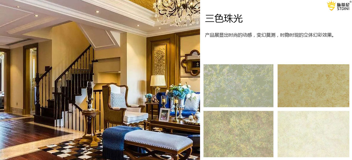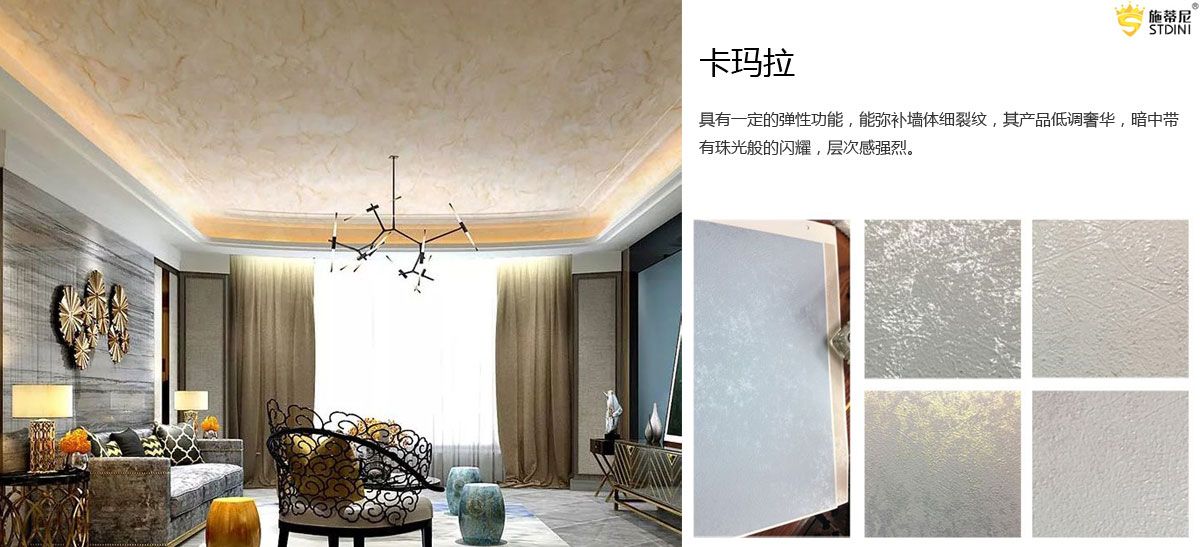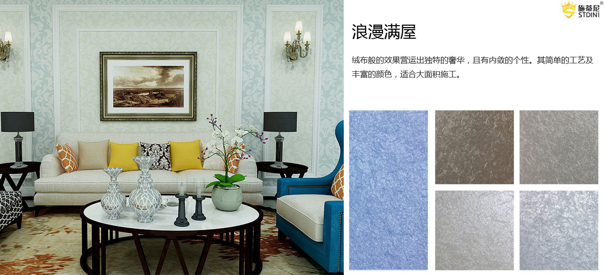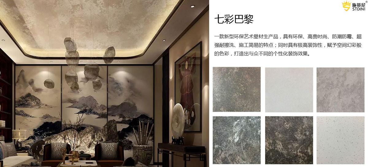 施蒂尼是一家集室内外艺术壁材专业研发、设计、销售为一体的科技型公司,引进意大利创新理念和制造技术,打造一站式服务的艺术壁材品牌。施蒂尼将家居文化、家居理念以及意大利建筑艺术装饰工艺和材料产品完美融合,对整体墙面进行整体设计,整体施工,整体质保,让千家万户的墙壁真正拥有艺术色彩,让更多的消费者能使用并感受到艺术的品质生活和艺术人生。